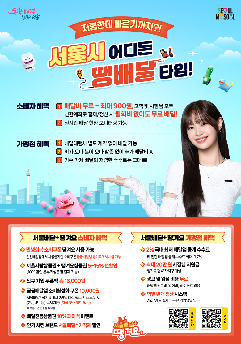 한정훈 서울시 소상공인정책과장은 “땡배달은 사장님의 배달플랫폼 수수료 부담을 줄이는 동시에 시민에게 합리적인 가격과 안정적인 서비스를 제공하는 상생 모델”이라며, “앞으로도 민관 협력을 강화해 사장님과 시민 모두가 실질적인 혜택을 체감할 수 있도록 적극 지원해 나가겠다”고 말했다.