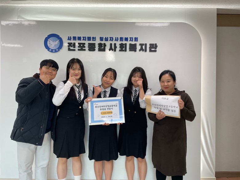 [부산 세계타임즈=이용우 기자] 부산 부산진구 부산진여자상업고등학교(교장 오창보)는 지난 12월 30일 학교 학생자치회 학생들이 2024년도 학생자치활동으로 마련한 814,740원을 전포종합사회복지관에 기부했다고 3일 밝혔다.
