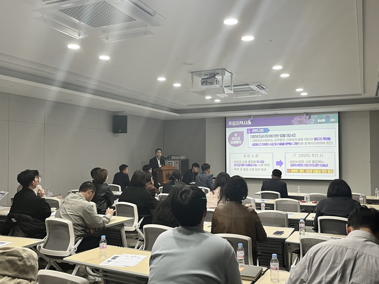 지방보조금 교육에서는 보조금 집행 기준, 정산 절차, 유의사항 및 주요 위반 사례 등을 중심으로 교육을 진행하여 재정 집행의 투명성을 한층 강화하는 시간을 가졌다.
