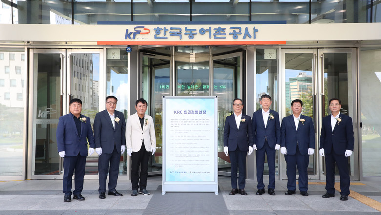 [세계타임즈 = 이영진 기자] 한국농어촌공사는 지난 12일 본사에서 ‘윤리·인권 경영 선포식과 현판식’을 개최하여, 전 임직원에게 인권 존중과 윤리적 책임의 중요성을 다시 강조하고, 이를 핵심 경영가치로 실천할 것을 다짐했다.