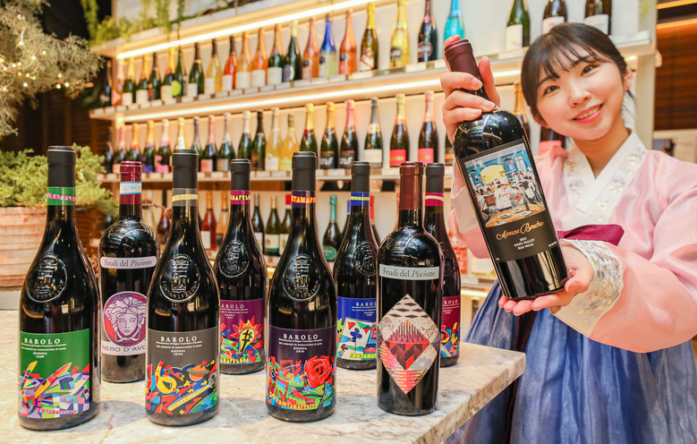 이번 행사 기간 현대백화점은 프랑스 작가 '마크 클로자드', 이탈리아 작가 '우고 네스폴로'와 협업한 와인을 선보인다. 대표 상품으로는 '아뮤즈 부셰 더 퀴진 2021×마크 클로자드 (100만원, 미국·750ml·12병 한정)', '폰타나 프레타 바롤로 리제르바×우고 네스폴로(200만원, 이탈리아·750ml*6병·6세트 한정)', '페우디 델 피시오토 베르사체 & 미쏘니 컬렉션(13만원, 이탈리아·750ml)' 등이 있다.