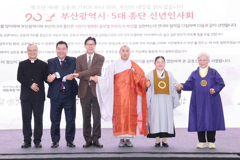 ◈ 종단별 새해 희망 메시지 전달과 함께 부산 발전을 위한 공동선언문 발표를 통해 종교 간 화합을 다지고, 시민의 평안과 행복을 기원하는 뜻깊은 자리로 마련 [세계타임즈=부산 이용우 기자] 부산시(시장 박형준)는 병오년 새해를 맞아 오늘(23일) 오후 3시 시의회 대회의실에서 지역 5대 종단과 함께 시민의 평안과 행복을 기원하는 「5대 종단 신년 인사회」를 개최한다고 밝혔다.