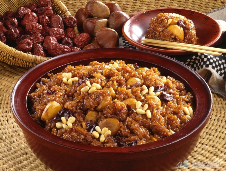 찹쌀은 성질이 따듯해 위장을 보호하고 기력을 보충하는 효과가 있다. 또한 약밥에 올라가는 대추도 성질이 따듯하며, 소화 기능과 면역력을 향상시키는 데 도움을 준다. ‘동의보감’과 ‘본초강목’에도 대추는 오장을 보호하고 속을 편안하게 하는 약재로 기록돼 있다. 아울러 약밥에 사용되는 꿀은 항산화 성분이 풍부해 노화 방지와 피부 건강 및 피로 회복을 돕는다.