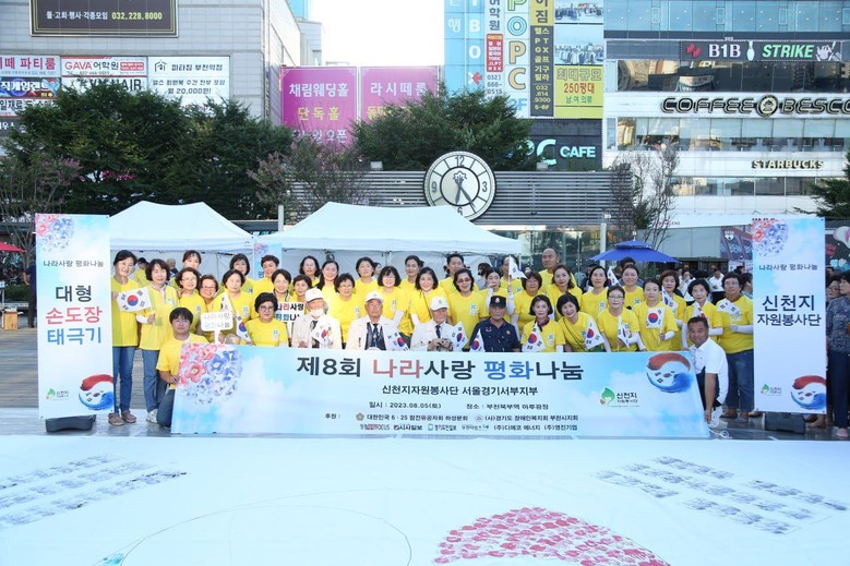 지난 5일 신천지자원봉사단 부천지부(지부장 유영빈)가 김포, 광명지부와 연합으로 국가유공자들과 시의원, 사회단체장들이 참석한 가운데 부천역 마루광장에서 '제 8회 나라사랑 평화나눔' 행사를 개최했다.