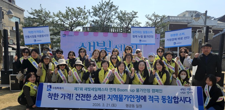 [수원시 세계타임즈=송민수 기자] 수원특례시(시장 이재준)는 제7회 새빛세일페스타 수원(3월 20일~29일)과 연계해 전통시장과 착한가격업소 이용을 장려하는 ‘물가안정 릴레이 캠페인’을 전개했다.