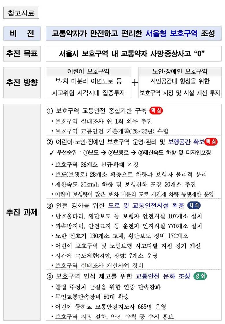 이와 함께 보호구역 지정이 가능한 대상 시설에 보호구역 지정 및 교통안전 수칙 등을 홍보하고, 어린이·노인·장애인 보호구역이 실효성 있게 운영될 수 있도록 경찰·교육청·자치구 등과 긴밀한 협력을 지속해 나갈 계획이다.