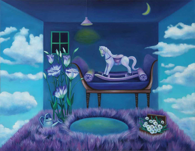 작가는 치열한 현실 속에 살고 있는 대부분의 사람들이 자신의 삶, 그 이상의 유토피아를 꿈꾸는 것에 주목했다. 그 유토피아는 모두 다른 빛깔과 형상을 띠고 있겠지만 작가의 무의식 속에 잠재되어 있는 유년시절의 기억에서 그것을 찾아 형상화하고 있다. 작가의 작업에 등장하는 집과 문은 그 추억으로 들어가는 입구가 된다. 그리고 그 안의 흔들 목마, 놀이공원의 회전목마, 말 인형은 수천 년 전부터 인간이 하늘과 땅을 오가는 존재라 믿었던 그 천마 혹은 신마의 존재를 떠오르게 한다. 즉 작가의 영혼을 오롯이 유토피아의 공간으로 실어다 주는 매개가 된다.