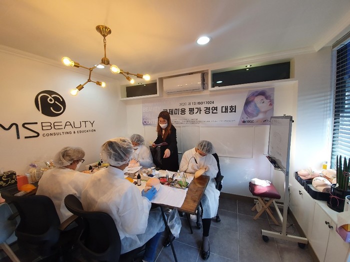 (사진=지난 20일 'MS뷰티 아카데미 대구'에서 '제1회 ISO17024 국제미용평가경연대회' 참가자들이 뷰티 디자인 시연을 선보이고 있는 모습. 서울=전국기자협회)