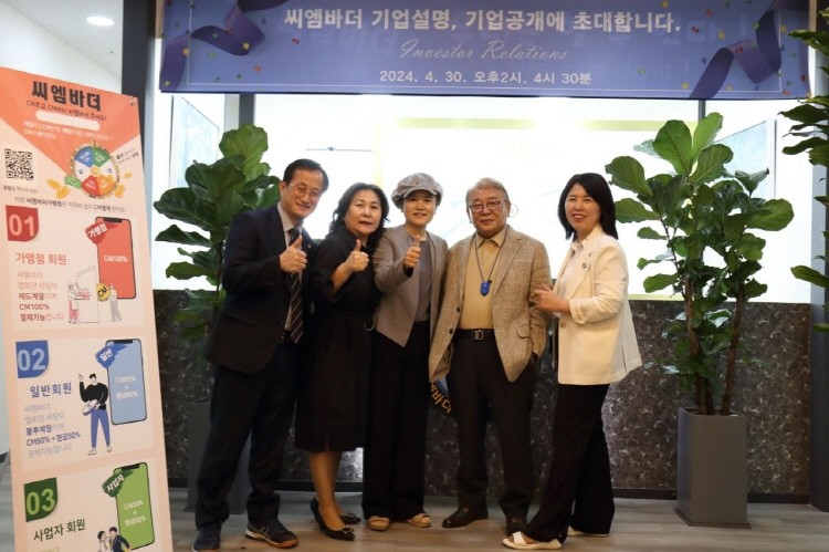 사회는 조남희 단장이 진행했고 김애경 대표이사가 환영사로 식의 문을 열었다. 씨엠바더 기업소개 동영상 시청 후 이승준 본부장은 '씨엠바더 시스템과 성장전략'을, 위수복 상무는 '씨엠바더의 오늘과 내일', 최승혁 투자전문가는 '씨엠바더코리아의 기업가치 설명'을 주제로 강연을 했다.