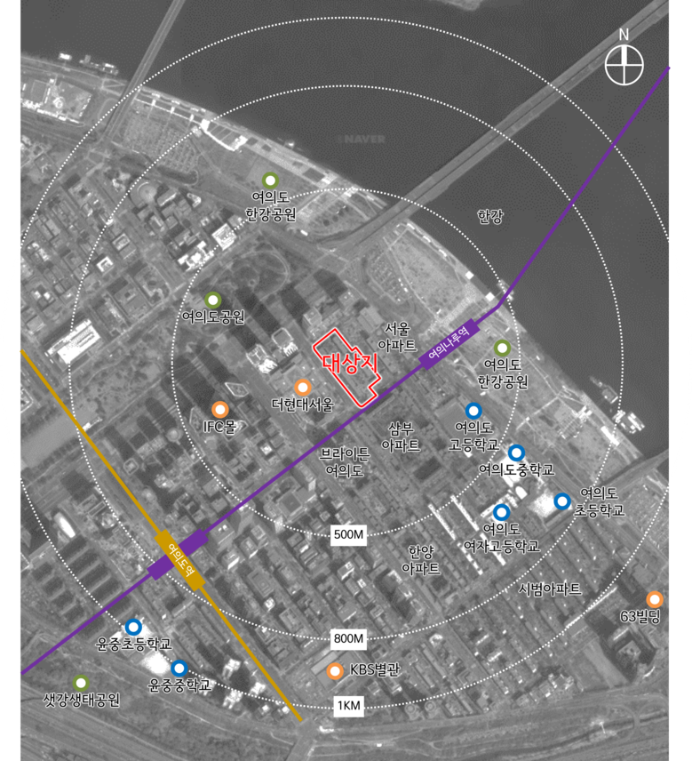 단지 저층부에는 업무 및 판매시설을 배치하고 공개공지 및 개방형 커뮤니티시설을 조성해 금융중심지 인프라와 한강 생활권을 유기적으로 연결한다.