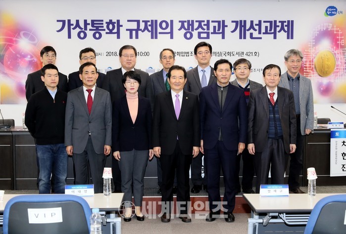 [세계타임즈 이채봉 기자]정세균 국회의장은 8일(목) 오전 국회 입법조사처 대회의실에서 열린 「가상통화 규제의 쟁점과 개선과제」세미나에 참석했다.