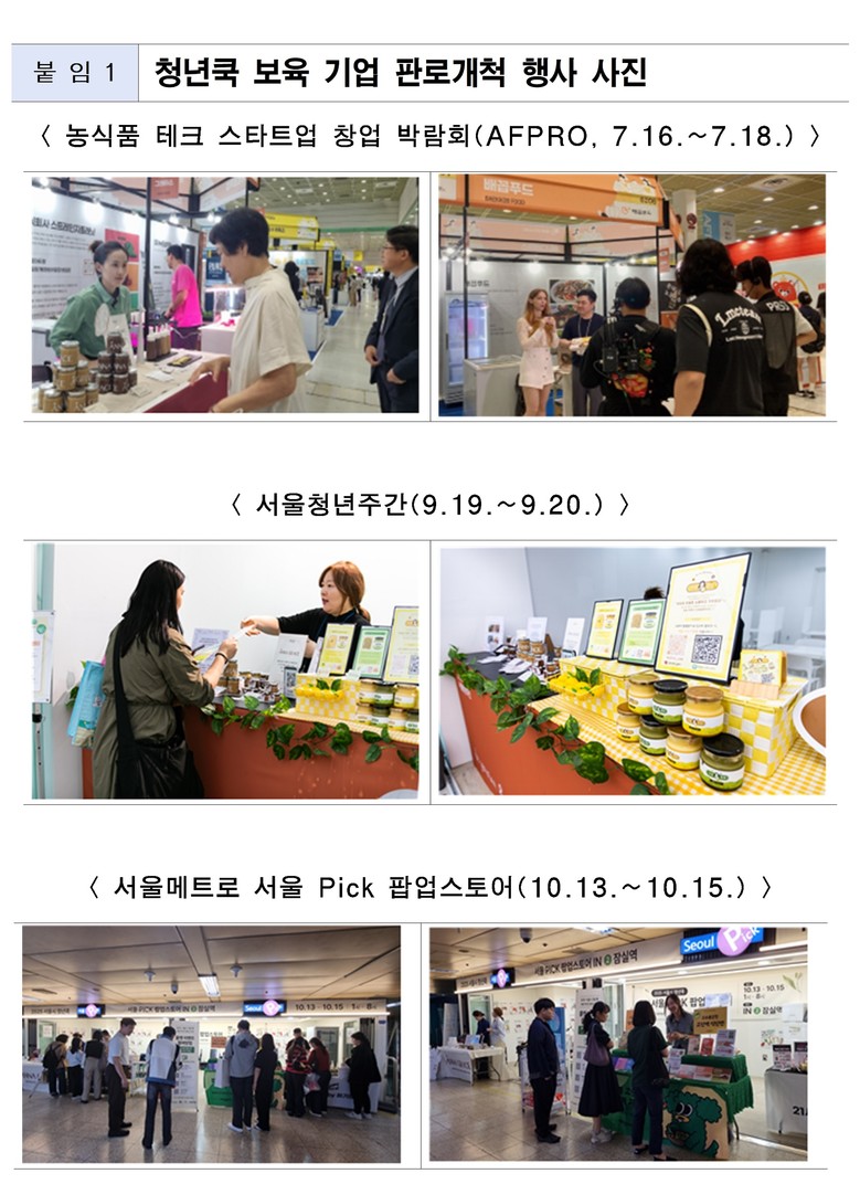 보육기업들은 ▴광진구 청년정책홍보전, ▴국립극장 플리마켓 등 지역기반 행사부터 ▴농림축산식품부 AFPRO 박람회 같은 전문 전시회에 참여해 소비자 접점을 넓혀갔다. 특히, AFPRO 박람회에서는 약 555만 원의 매출 성과를 기록하는 등 실질적인 수익도 창출했다.