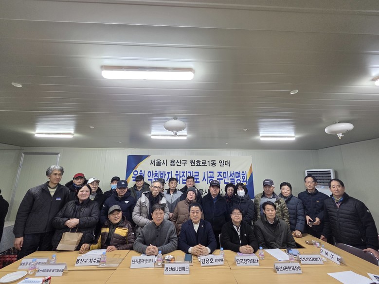 [서울 세계타임즈=이장성 기자] 서울특별시의회 도시안전건설위원회 부위원장으로 활동하고 있는 김용호 시의원(국민의힘, 용산1)은 지난 1월 29일 원효로1동 소재 장학재단 현장사무실에서 열린 ‘욱천 악취 민원 해결을 위한 주민설명회’에 참석해 사업 추진 내용과 향후 공사 계획을 주민들과 공유했다.