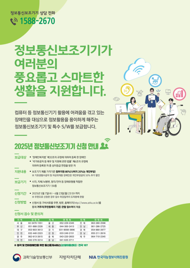 자세한 사항은 정보통신보조기기 보급 누리집(www.at4u.or.kr), 상담전화(☎1588-2670), 손말이음센터(☎107)를 통해 문의하면 된다.