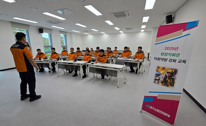 ▸ 재난 대응 핵심 인력 대상으로 시뮬레이션 기반 실전 중심 훈련 [세계타임즈=대구 한윤석 기자] 대구소방안전본부(본부장 엄준욱)는 재난 발생 시 현장 대응의 핵심 역할을 수행하는 현장 지휘관들의 전문성과 대응능력 강화를 위해 7월 16일(수) 대구소방교육훈련센터(동구 각산동)에서 ‘신규현장지휘관 지휘역량 강화 교육’ 실시했다.