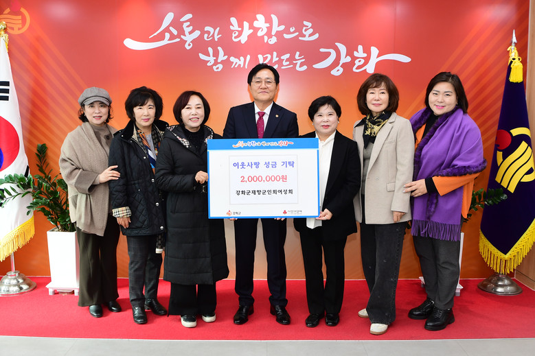 [강화군 세계타임즈=심하린 기자] 강화군(군수 박용철)은 지난 11일, 강화군재향군인회 여성회(회장 김한순)에서 연말을 맞아 지역사회 어려운 이웃을 돕기 위해 사랑의 성금 200만 원을 강화군에 기탁했다고 밝혔다.