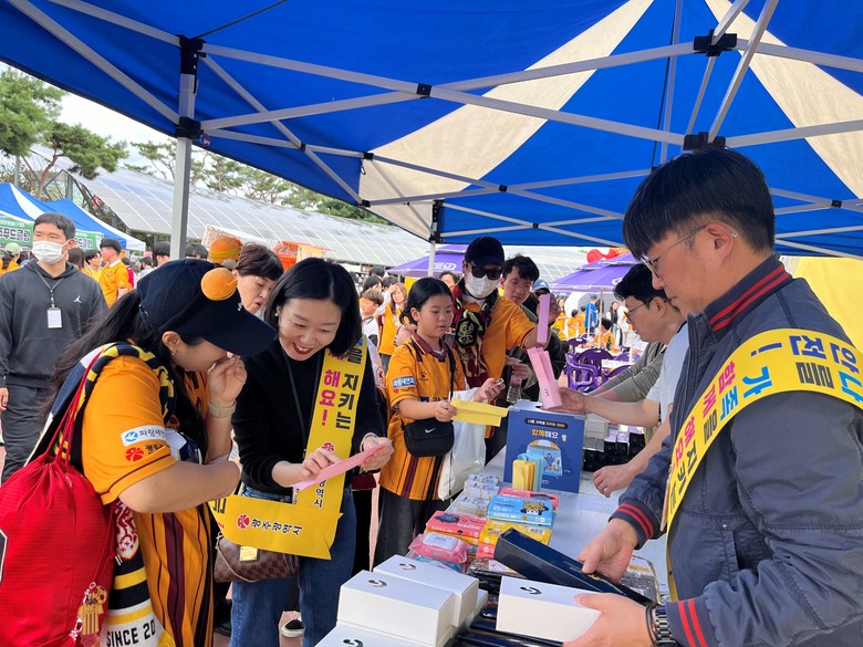 [광주 세계타임즈=손권일 기자] 광주광역시(강기정 시장)는 지난 2일 광주FC 경기가 열리는 광주축구전용경기장에서 범시민재난안전추진단과 함께 경기장을 찾는 시민들을 대상으로 ‘안전! 함께해요!’ 캠페인을 펼쳤다.