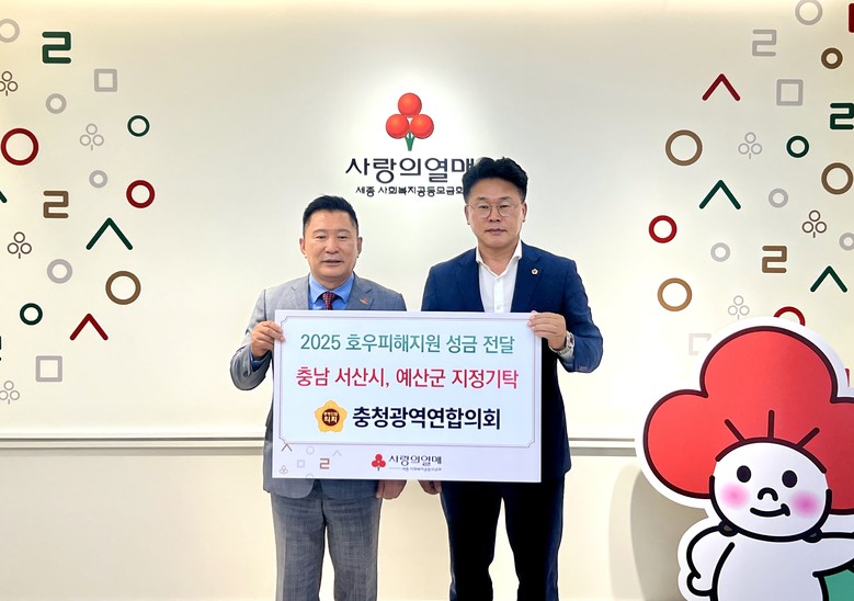 이번 성금 전달에 동참한 충청광역연합의회 의원 일동은 “호우피해로 일상생활이 어려운 이재민과 복구작업에 힘쓰고 있는 주민들에게 조금이나마 도움이 되기를 바란다”며, 특히 특별재난구역으로 선포된 충남 서산·예산지역 피해민들이 빠른 일상으로 복귀할 수 있도록 많은 관심과 참여를 당부했다.