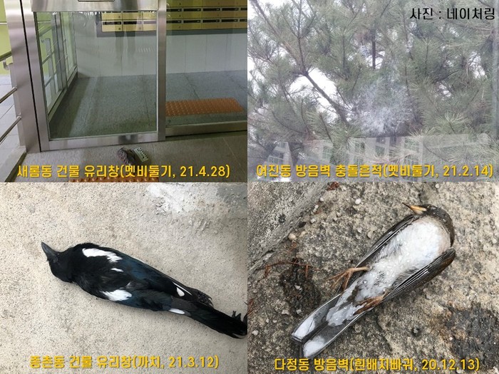또한 세종시 차원에서 인공구조물 조류 충돌 예방을 위한 구체적인 지침과 준수사항 마련이 시급하다면서 건축물의 공공 디자인이나 환경영향평가 심의기준에 야생생물과의 공존을 가능하도록 하는 내용이 담겨야 한다고 강조했다.