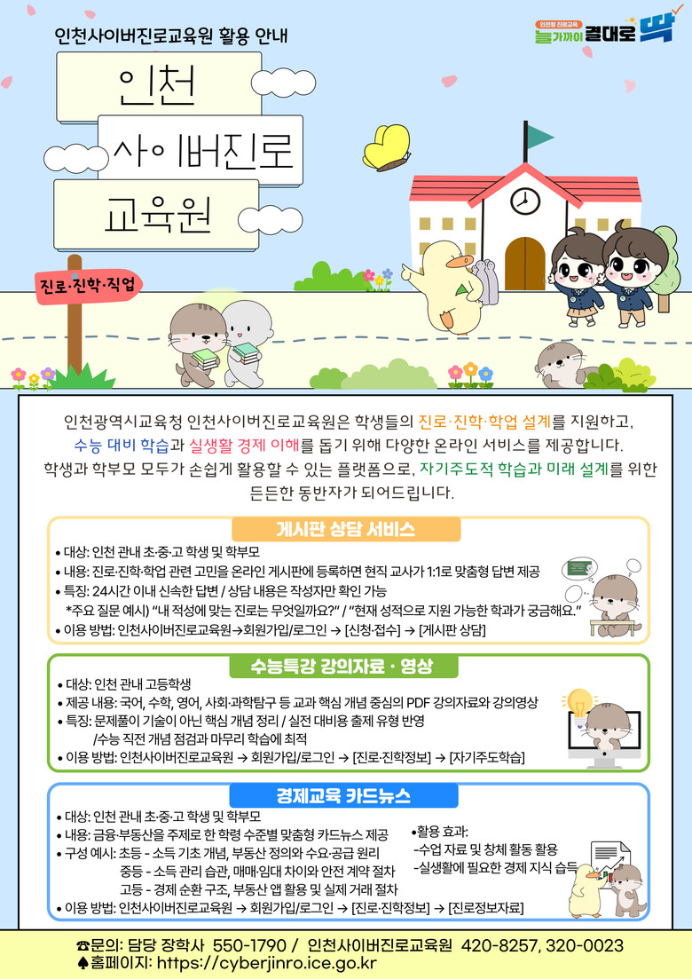 인천시교육청 관계자는 “이번 신규 콘텐츠는 경제 소양부터 대입 준비까지 학생들의 다양한 요구를 반영했다”며 “교육원 자료를 적극 활용해 자신감 있게 미래를 준비하길 바란다”고 말했다.