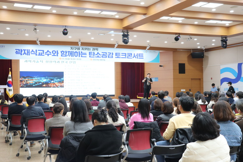 14일에는 권선구청 대회의실에서 환경안전 공학자 곽재식 교수를 초청해 탄소공감 토크콘서트를 열었다.
