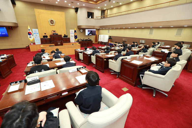 청소년 의회교실은 학생들이 ‘1일 도의원’이 되어 의장 선거, 안건 심의, 자유발언 등 실제 의정활동을 체험해 보는 프로그램으로 지방의회가 어떤 역할을 하는지 직접 경험할 수 있다.
