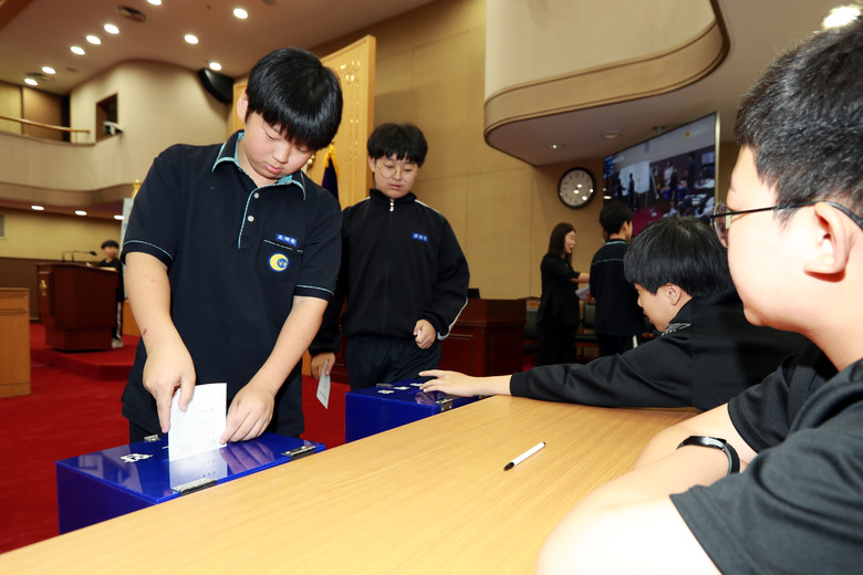 이번 의회교실에 참여한 학생들은 무기명 투표로 의장을 선출하고 ‘교복 자유화 조례안’, ‘1학년 시간표 바꾸기 건의안’, ‘교실 뒤편 사물함 교체 건의안’ 등 총 3건의 안건에 대해 찬반 토론과 전자투표로 표결을 진행했다.