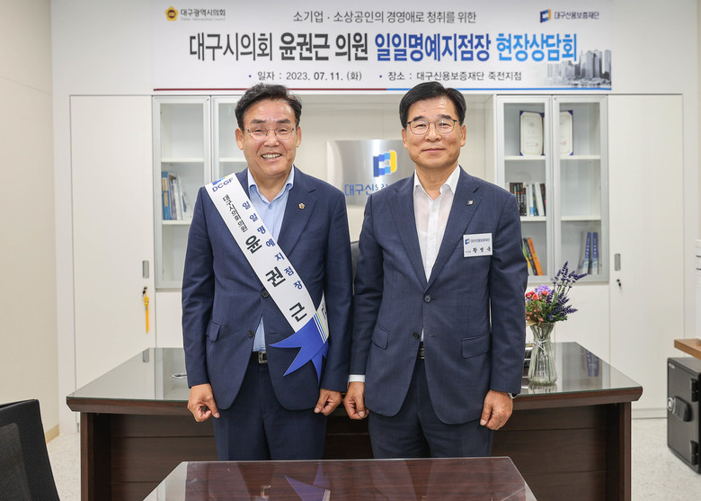 윤권근 의원은 “대구신용보증재단 일일명예지점장으로서 현장애로를 생생하게 느낄 수 있는 뜻깊은 시간이었다”며, “대구시 기업들의 경영안정과 성장지원을 위해 대구시의회 경제환경위원회는 대구신용보증재단과 상호 협력하며 최선을 다할 것”이라며 소감을 밝혔다.