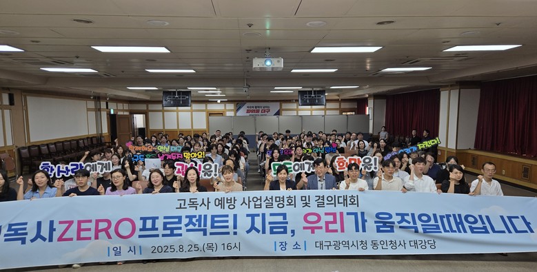 ▸ ‘고독사 없는 대구’ 위한 사업 방향 공유 및 의견 수렴 [세계타임즈=대구 한윤석 기자] 대구광역시는 8월 25일(월), 대구시청 동인청사에서 9개 구·군 읍·면·동 고독사 예방사업 담당 공무원 160여 명과 함께 ‘2025년 고독사 예방사업’ 추진계획을 공유하고 의견을 수렴하는 사업설명회 및 결의대회를 개최했다.