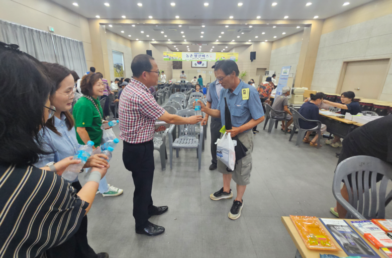 [강화군 세계타임즈=심하린 기자] 강화군 교동면(면장 최동관)이 지난 1일, 농촌 왕진 버스 이용을 위해 대기하시는 어르신들께 폭염 속 온열질환 피해를 예방하기 위한 생수를 배부했다고 밝혔다.