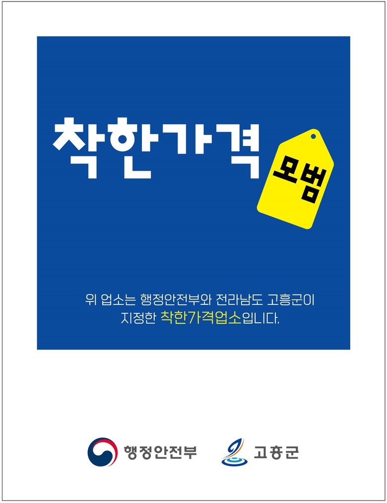 한편, 고흥군에서는 행정안전부와 협력해 군민이 직접 착한가격업소를 추천하는 ‘착한가격업소 대국민 추천 공모’와 착한가격업소를 10개소 이상 방문하거나 30회 이상 이용 후 영수증을 인증하면 순은 기념 메달을 제공하는 ‘착한가격업소 방문인증 챌린지’도 함께 추진 중이다.