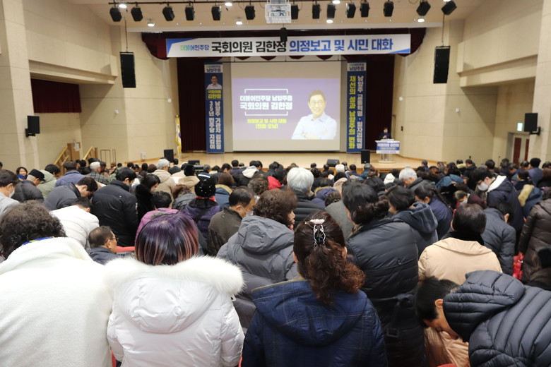 [세계타임즈 = 심귀영 기자] 김한정 의원(더불어민주당 남양주을, 재선 국회의원, 국회 산업통상자원중소벤처기업위원회 간사)은 4일 남양주 진접주민자치센터 크낙새홀에서 의정 보고회와 시민과의 대화를 가졌다.