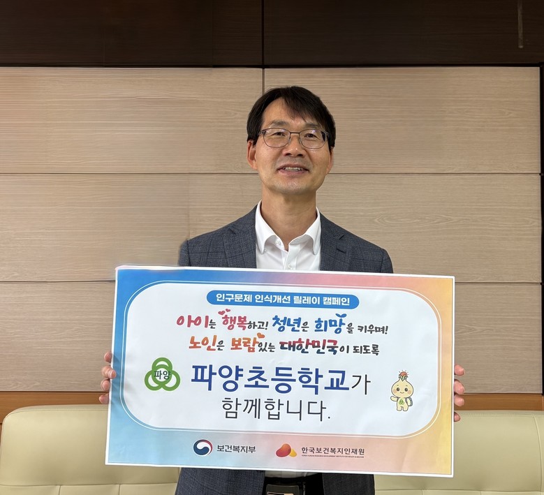 [파주시 세계타임즈=송민수 기자] 파양초등학교 강정수 교장이 최근 '인구문제 인식개선 릴레이 캠페인'에 참여하며 지역사회에 따뜻한 메시지를 전했다.