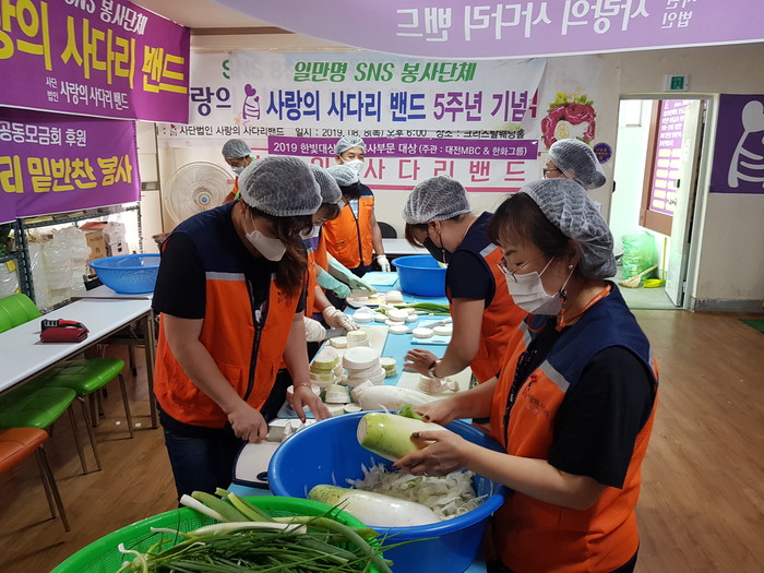 [대전=세계타임즈 이채봉 기자] 대전광역시 SNS 일만명 봉사단체 사랑의 사다리 밴드(리더 이정제)는 지난3일 오전9시~오후1시에 대덕구 중리동에 위치한 사랑의 사다리 밴드 사무실에서 밑반찬을 만들어서 동구, 대덕구 소외계층 60가정에 전달을 하였다.