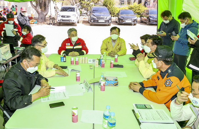 고우현 의장을 비롯한 도기욱 부의장, 박창석(군위) 의원 등은 현장에서 산불 진화 및 피해 상황을 보고받고 진화작업에 최선을 다하고 있는 직원들과 지원인력들을 격려했다.