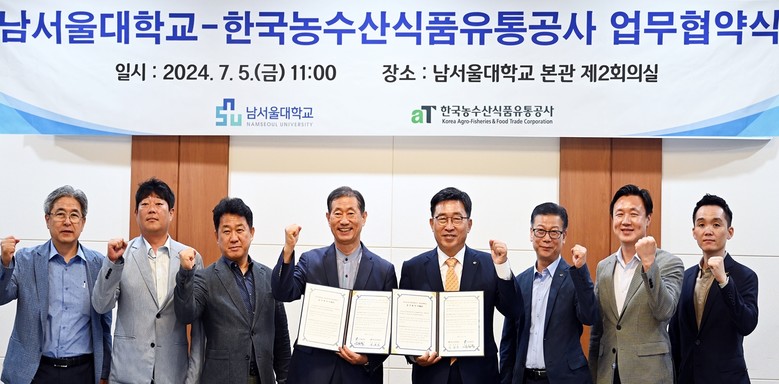 남서울대학교는 1994년 개교 이래 인류 사랑과 사회봉사를 기치로 천안과 충청남도 지역 연계 교육사업과 사회공헌활동에 앞장서며 ESG 가치를 실천 중이다. 또한 스마트팜학과 설립 등 국내 농수산식품 산업 미래 인재 육성에도 힘쓰고 있어 공사와 이번 협약을 계기로 다양한 시너지 효과를 낼 것으로 기대된다.