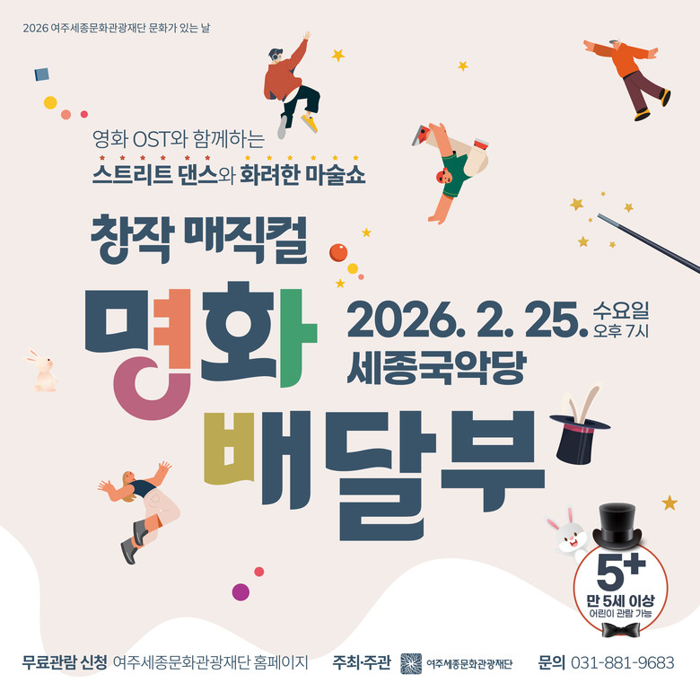 한편, 이번 공연을 포함한 여주세종문화관광재단 다양한 공연, 교육, 행사 정보는 재단 홈페이지(https://www.yjcf.or.kr)에서 확인할 수 있다.
