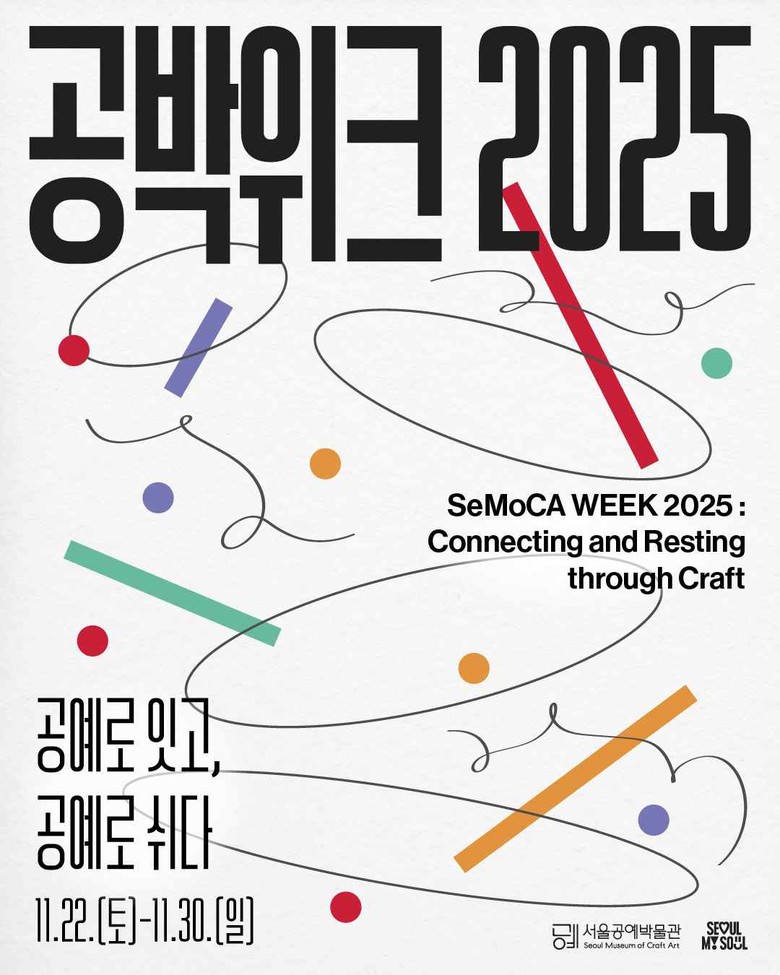- 작가공방 밀착투어(7종)·마음 챙김 힐링 투어(9종)·특별 행사(4종),총 20개 프로그램 모두 무료 [서울 세계타임즈=이장성 기자] 서울공예박물관(관장 김수정)은 11월 22일부터 30일까지, 개관 4주년을 기념해 <공박위크 2025: 공예로 잇고, 공예로 쉬다>를 개최한다. <공박위크>는 공예의 가치를 시민들과 공유하고, 일상 속에서 공예를 체험하며 힐링할 수 있는 개관 기념 주간으로 기획됐다.