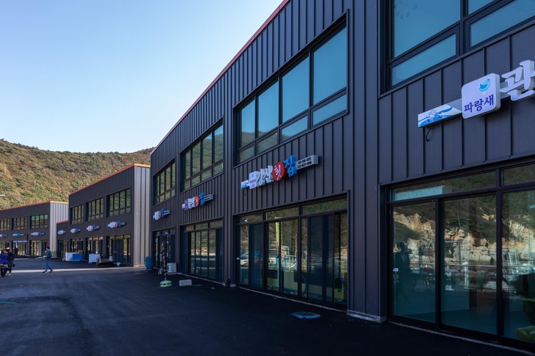 ‘두무진 회센터’는 과거 포구 인근에서 어민들이 삼삼오오 모여 영업을 이어가던 공간이었으나, 2018년 옹진군 마을경관개선사업을 통해 직판장이 신축되면서 현재 4개 동, 총 16개 음식점이 자리 잡은 수산물 특화 상점가로 재탄생했다. 해당 상점가는 백령도를 대표하는 관광 명소 두무진 절경과 맞닿아 있어, 푸른 바다를 배경으로 신선한 회와 해산물 요리를 즐길 수 있는 지역 명소로 주목받고 있다.
