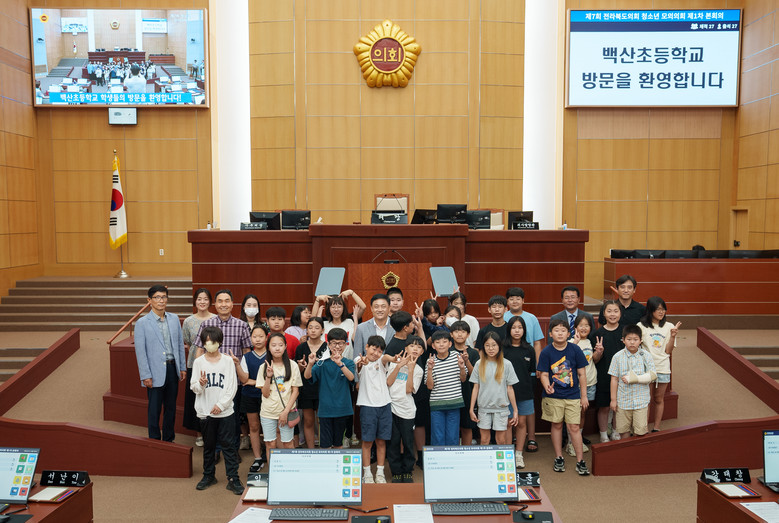 김정기(부안) 의원은 “오늘 모의의회에서 의원의 역할을 직접 체험해 봄으로써 지방의회의 기능과 역할에 대해 배우게 될 것”이라면서 “백산초등학교 100주년을 축하하며 자긍심을 가지길 바란다”고 격려했다. 이날 참석한 김양원 의회사무처장도 “도의회는 도민을 대표하는 기관으로서 중요한 일을 하고 있음을 알게 될 것이며 오늘 체험이 여러분의 인생에서 의미있는 시간이 되길 바란다”고 말했다.