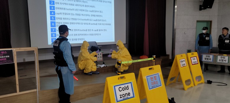 이번 훈련은 구리시보건소를 중심으로 수도권 질병대응센터, 구리경찰서, 구리소방서, 구리시 안전총괄과 등 4개 기관 40여 명이 참여해 생물테러 발생 시 신속하고 정확한 대응 체계를 점검했다.