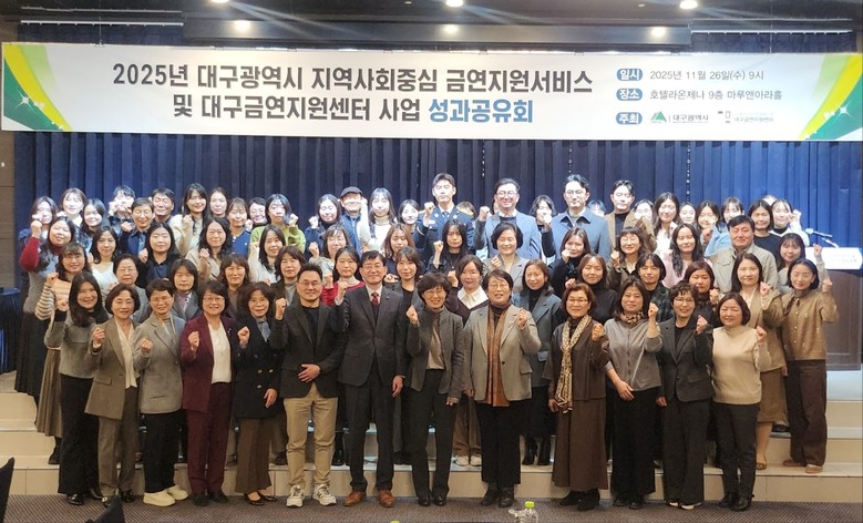 ▸ 금연사업 우수사례 발표 및 지역사회 협력 강화 도모 [세계타임즈=대구 한윤석 기자] 대구광역시는 대구금연지원센터와 함께 11월 26일(수) 호텔라온제나에서 ‘2025년 대구광역시 지역사회중심 금연지원서비스 및 대구금연지원센터 사업 성과공유회’를 공동 개최했다.