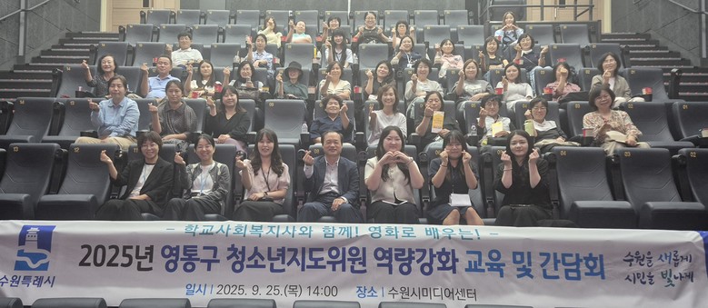 [수원시 세계타임즈=송민수 기자] 수원시 영통구(구청장 장수석)는 지난 25일, 수원시미디어센터에서 2025년 청소년지도위원 역량강화 교육 및 간담회를 진행했다. 이번 행사에는 영통구 청소년지도위원, 학교사회복지사, 동 행정복지센터 청소년 담당자 등 50여명이 참석했다.