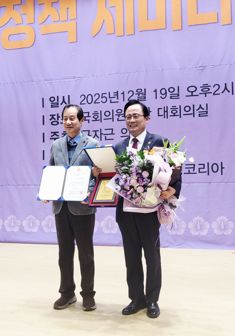 [서울 세계타임즈=이장성 기자] 서울특별시의회 김형재 의원(국민의힘·강남2)이 19일 국회 의원회관에서 개최된 여의도정책연구원 주관 ‘2025 지방자치평가 의정·정책대상’ 시상식에서 광역의회 부문 최고 영예인 ‘대상’을 수상했다.