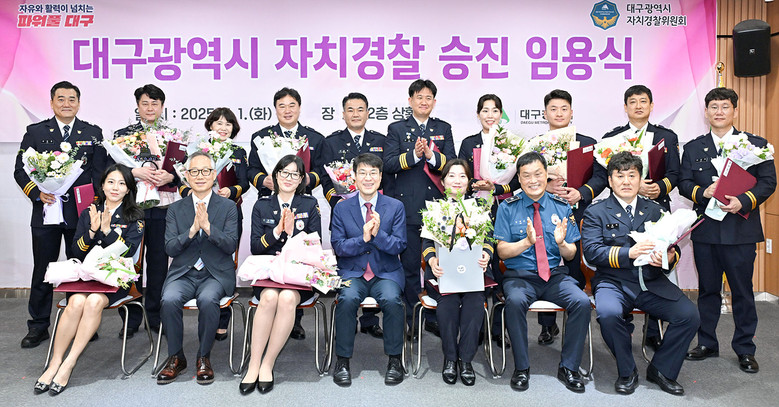김정기 대구광역시 권한대행 행정부시장은 “승진을 축하드리며 앞으로 더 큰 사명감을 가지고 대구 시민의 안전과 일상 행복을 지키는 데 최선을 다해줄 것으로 기대한다”며, “자치경찰의 복지와 근무 여건 개선에도 지원을 아끼지 않겠다”고 말했다.
