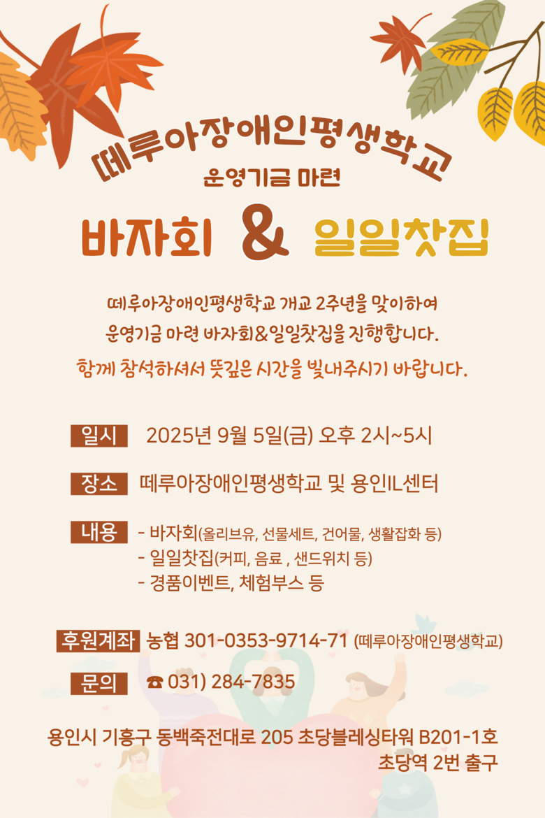 | ▲떼루아장애인평생학교 운영기금 마련 일일찾집 및 바자회 포스터. |
