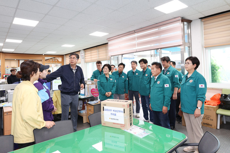 한편 경북도의회는 이번 집중호우로 파손된 주택과 도로 등 예천, 봉화, 영주, 문경 등 경북 북부지역에 산사태와 주택 붕괴에 따른 매몰 사고가 잇따르며 사망·실종자가 속출하여 피해현장을 지난 7.15.(토)부터 연이어 긴급 방문해 응급 복구 추진현황을 점검하고 피해 주민들을 위로 했으며, 7.16.(일)에는 연일 집중호우 대응을 위해 비상근무 하는 직원과 현장 근무자들에게 빵과 음료 등 격려품을 전달하며 피해 도민에게 도움의 손길이 이어지기를 당부했다.