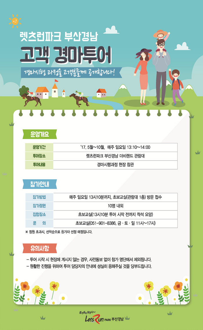- 부경 최초 시행 ‘경마 고객투어’. 경마를 알든 모르든 누구나 쉽고 재밌게 즐길 수 있어