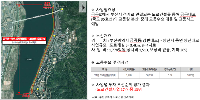 ◇ 미완성 상태로 남아 있는‘금곡~양산간 시계도로’완성