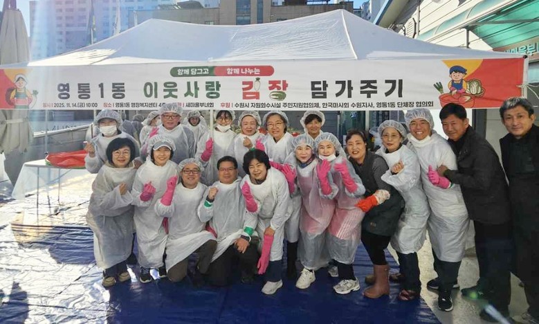 이번 행사는 영통1동 새마을부녀회가 주최하고 영통1동 주민자치회, 통장협의회, 새마을문고 등 각급 기관·단체 60여 명이 협력한 가운데 약 150포기의 김장 김치를 정성껏 담갔다. 참여자들은 이른 아침부터 함께 양념을 버무리며, “겨울을 앞두고 어려운 이웃들이 따뜻한 밥상으로 힘을 내길 바란다”는 마음을 담았다. 이날 준비된 김치는 관내 취약계층 등 지역사회의 도움이 필요한 65가구에 전달되었다.